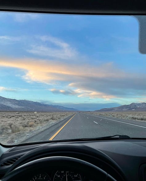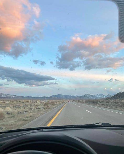 I also fell in love, in a big way, with a boy I met on the internet and drove six hours to meet for the first time and have been with ever since. I worked remotely and spent a lot of time driving through the Sierras with my dog as my boyfriend briefly settled in Reno, Nevada, a city for which I developed an unexpected fondness. It was cold, but it was desert-cold. The Sierras turn purple just like the San Gabriel Mountains do. I was a poetry critic turned product manager; he was a ballet dancer turned software engineer. Together, we drifted across the west like tumbleweed, our stems displaced but our branches entangled, a rootless home that was nevertheless still home.